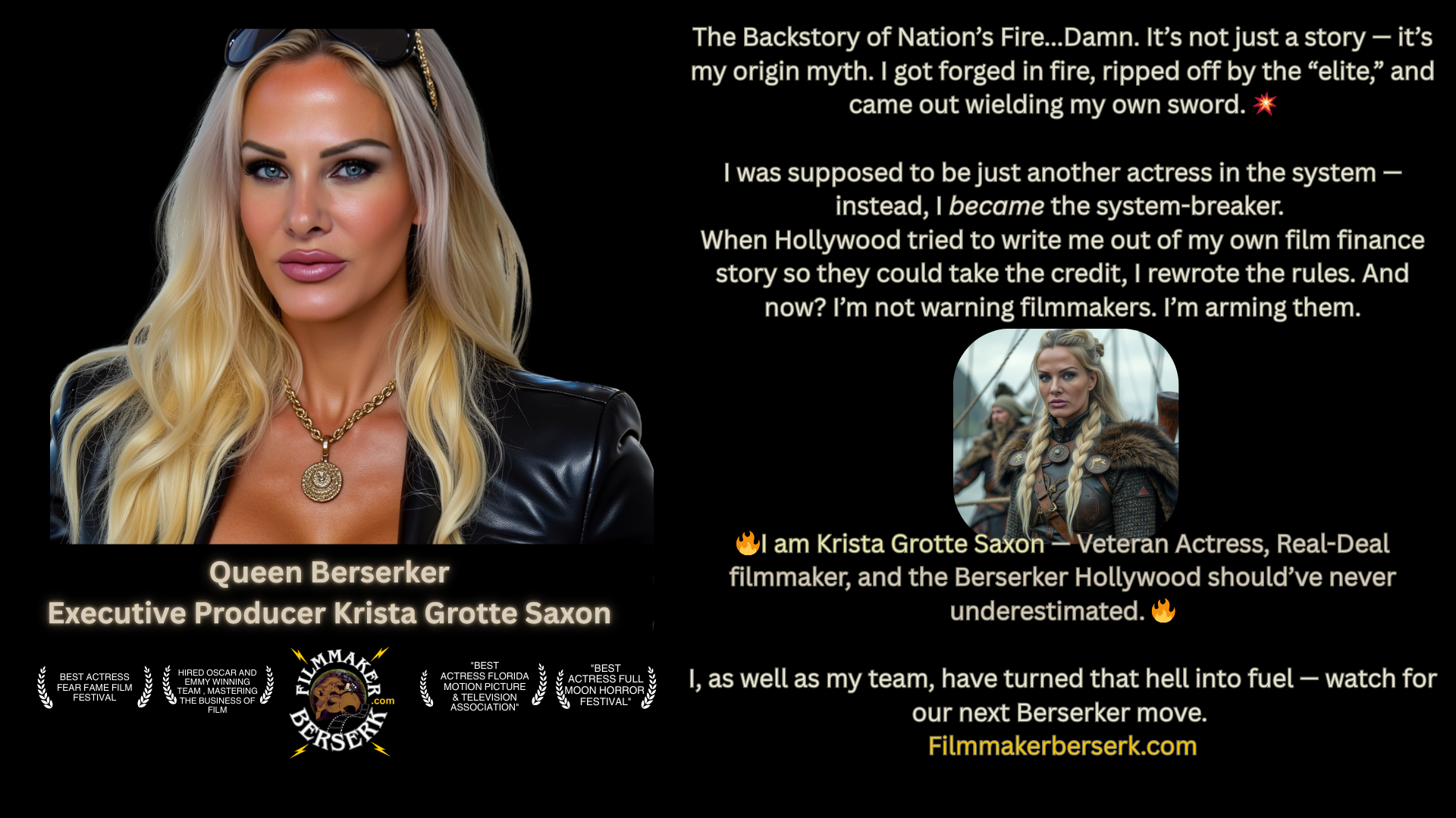 Krista Grotte Saxon — Founder of Neo Hollywood™ Architect of The Berserker Method™. Leader of the filmmaking era that replaces Old Hollywood.